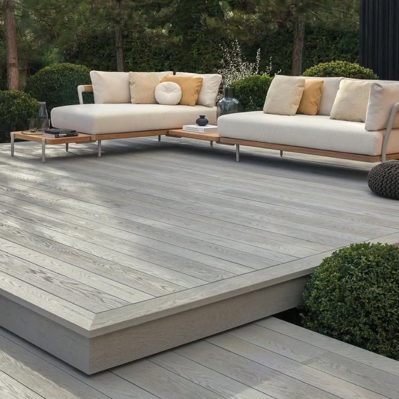 Deck de WPC (Wood Plastic Composite) coextruido. Tablones de espesor de 23 mm. Compuesto por derivados de la madera y resinas. Muy resistente a la humedad y cambios de temperatura, con alta estabilidad. Con sistema de instalación sobre emparrillado y conectores invisibles. Tablones de doble color por lo que es reversible, se instala por ambos lados.