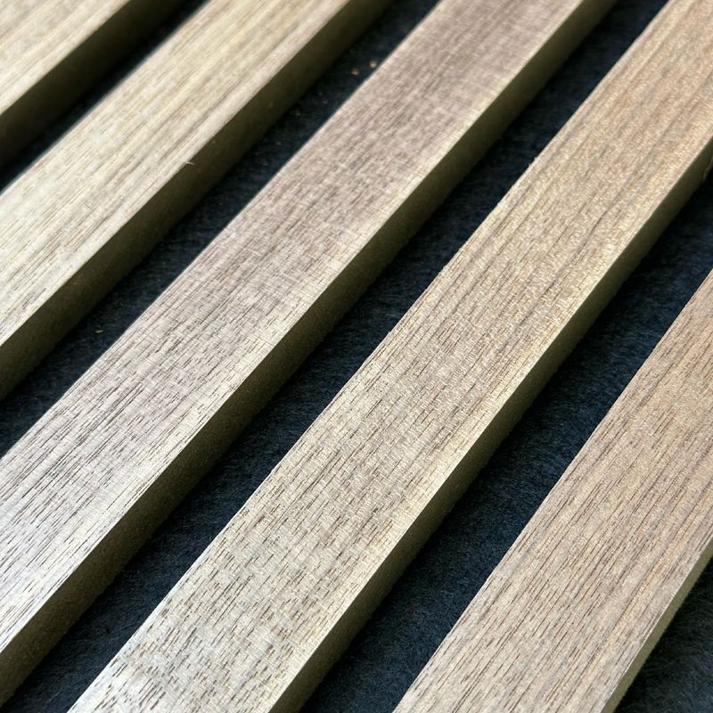 Revestimientos de muro con doble función, estética y aislante acústico. Este modelo de revestimiento se caracteriza por amortiguar el nivel sonoro de los espacios. Compuesto por; MAT de poliéster, cuerpo MDF y chapa de madera natural. Además está fabricado con materiales de PET con un 45% de material reciclado. La madera utilizada es de alta calidad procede de bosques sostenibles. Sus medidas son de 2600x520x21,5 mm y puede instalarse en muros y cielos.